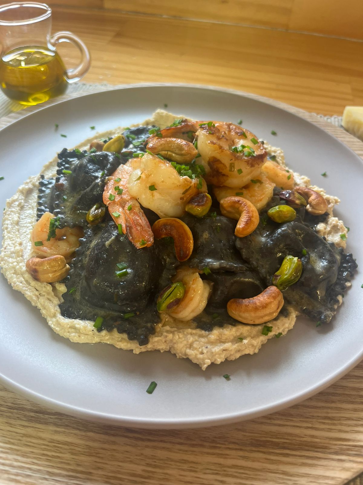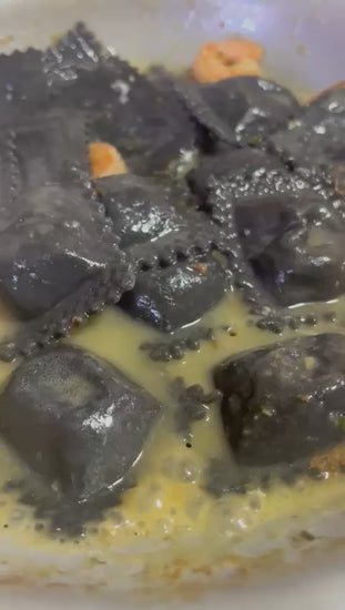 Con su valiente tonalidad negra destacan por su balanceado sabor de la trucha y una textura suave. Especiales para comerlos con nuestra espectacular crema nuez o una salsa a base de mantequilla. Para aquellos que gustan de un plato más coloridos sugerimos combinarlos con ravioles Ricota-Nuez o Espinaca-Ricota.