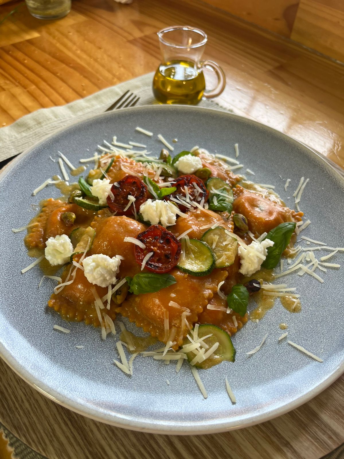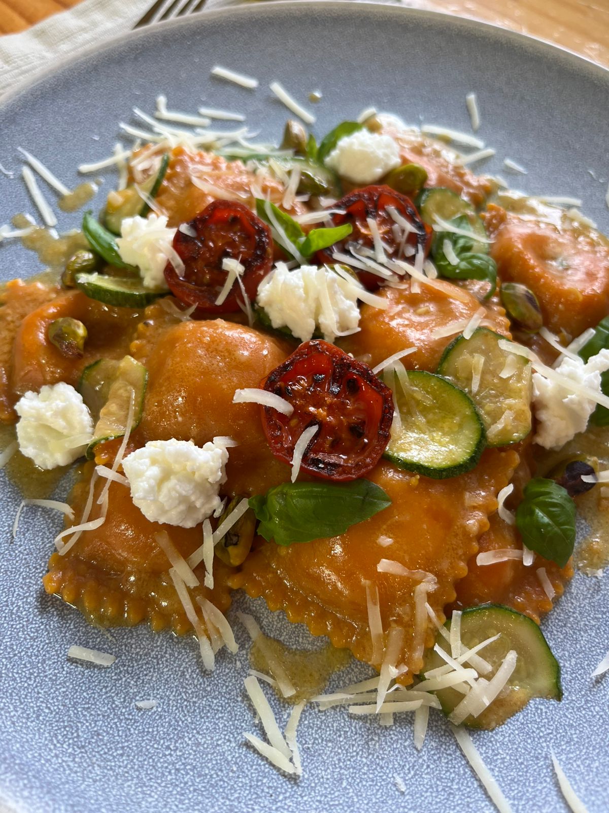 La elaboración del relleno comienza asando zapallos y ajo los que se caramelizan con el calor proporcionando un sabor único que combina muy bien con salsas como pomodoro o tuco.